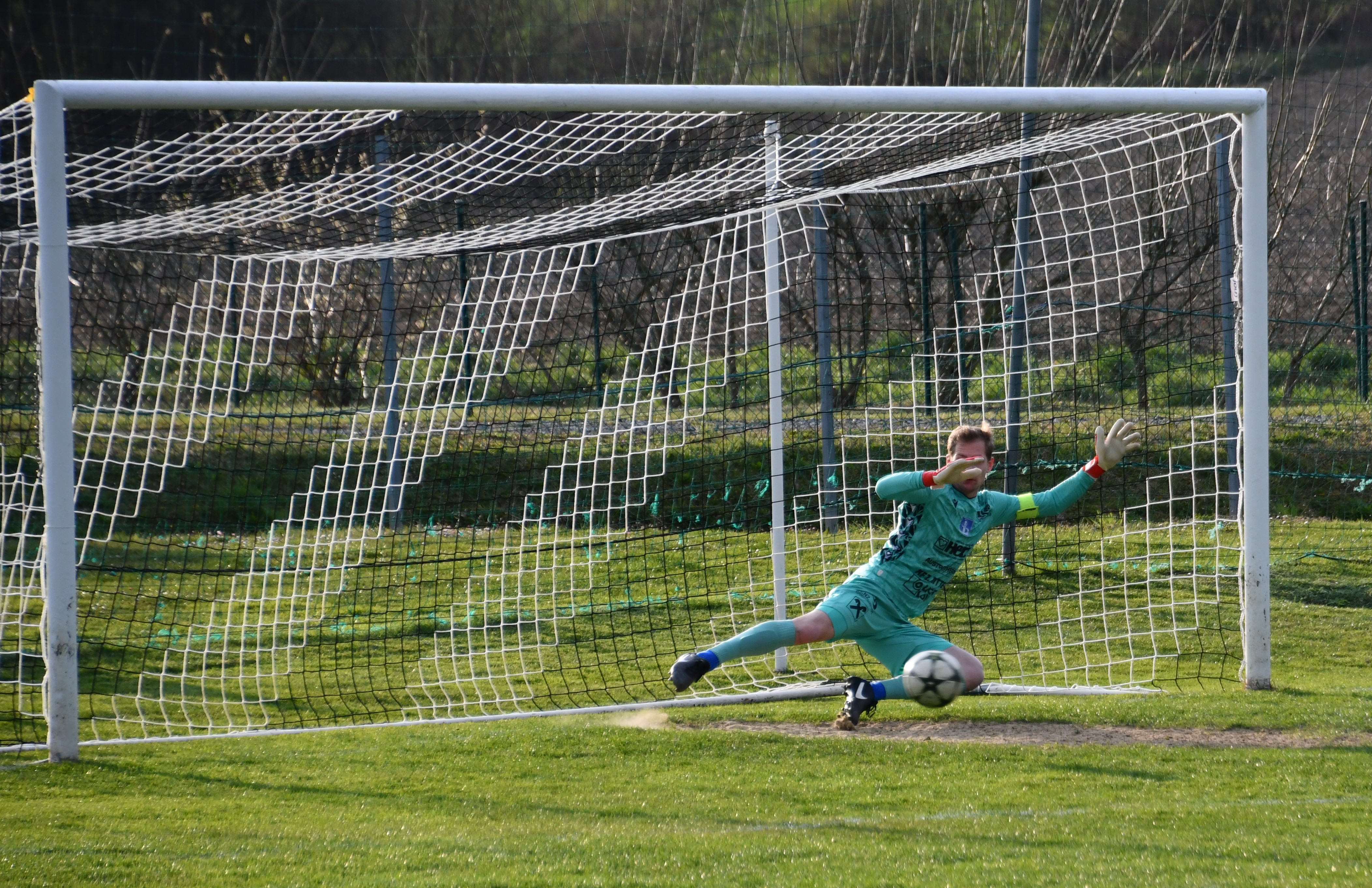 2.Foto links: ... einen davon parierte unser Keeper HAMR akrobatisch. Ex-Bundesligakicker Tadic entwischte einmal (aber auch nicht mehr!) und feuerte einen Schuss ab, der noch ans Gehäuse abgelenkt werden konnte - STARK! Doch auch unsere Jungs waren knapp an einer Führung dran. Ein Querlattenpendler und eine 100%-ige von REBERNIK zeigten, dass auch der SVK mehr als nur mitspielte. Ein Spiel zum Zunge schnalzen! Der eine Punkt war hart erkämpft aber wieder sehr verdient.