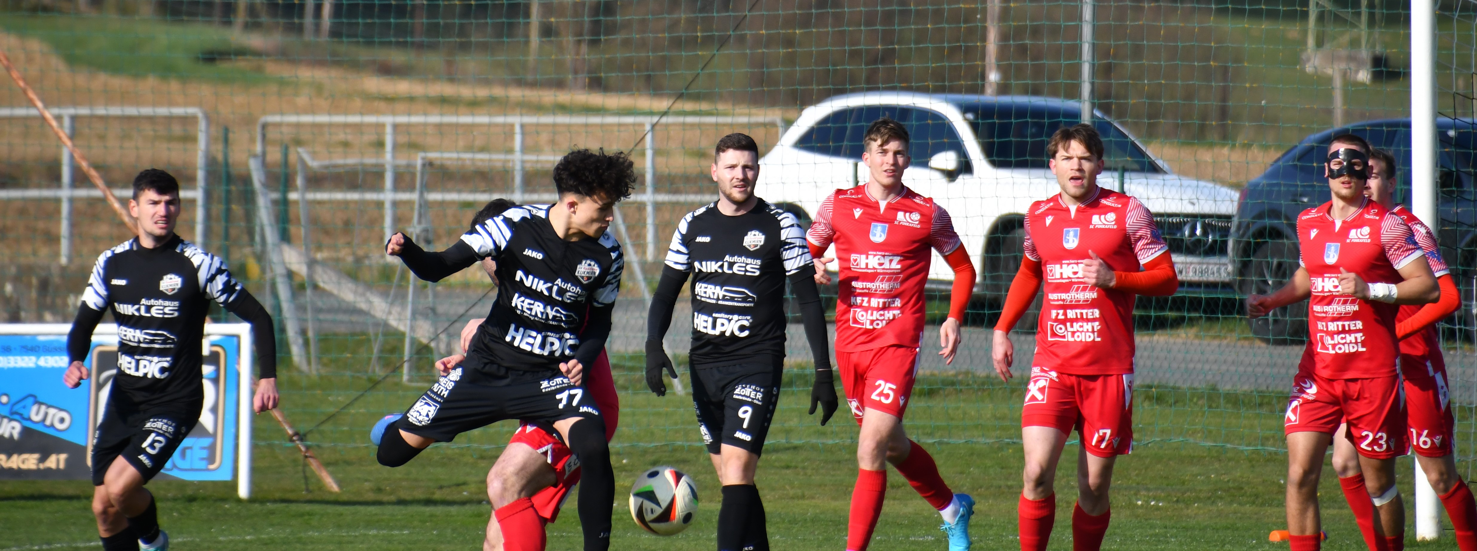 1. HZ: Die erste Hälfte verlief unspektakulär. Nach einer kurzen Abtastphasen hatten sich beide Teams aufeinander abgestimmt. Den ersten Schuss in die Richtung eines Tores lieferte VRTARIC nach knapp 10' Minuten - dieser ging knapp über das Gehäuse. Danach hatten die Gäste zwei Offensivaktionen direkt hintereinander. Zuerst konnte Tadic eine weite Flanke nicht direkt verarbeiten, wodurch die Gefahr schnell gebannt war. Bei einem weiteren Flachschuss von der Seite zum Tor rutschte ein Pinkafelder vor unserem Goalie ins Spielgerät, das schließlich ins Torout ging. In der 37' Minute kam der kurz zuvor eingewechselte MAYER vor den schon lauernden Pinkafelder Routinier Tadic an die Kugel und verhinderte so eine Topchance. Auf der Gegenseite probierte es KAPPEL mit einem Distanzschuss der den Gästetorwart zum Eingreifen zwang (19' Minute). Viel mehr gab es dann auch nicht mehr zu berichten. Zu unserem Leidwesen erwischte es FRÜHMANN leider bei einem unglücklichen Zweikampf. Noah konnte nicht weiterspielen - wir wünschen an dieser Stelle alles Gute! Mit einer "Nullnummer" ging es folglich in die Halbzeitpause.