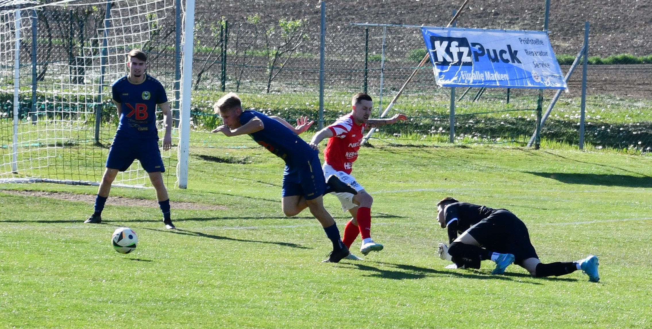 2. Foto links: Der kurz zuvor eingewechselte FRÜHMANN tat es unserem Goalgetter gleich und zimmerte einen perfekt getretenen Schuss ins Kreuzeck. Wieder absolut sehenswert!! Damit konnten unsere Jungs die Führung zurückerobern und durch unseren Kapitän, der den Schlusspunkt setzte, am Ende auch ordentlich festigen. Damit ist alles bereit für den Derbyschlager in der nächsten Runde.