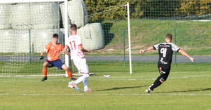 1. Foto links: Der Moment vor dem 1:0 für den SVK - REBERNIK prüft den Mühlgrabener Schlussmann, der den scharfen Schuss zwar abblocken kann, doch im Hinterhalt lauerte KAPPEL, der den Abstauber souverän verwerten konnte. Der SVK hatte den eindeutig besseren Start und konnte sich so einige gute Chancen herausspielen. Die Führung war zu diesem Zeitpunkt auch verdient. Mit der ersten Standardsituation für die Gäste konnten diese ausgleichen, doch unsere Jungs hatten die passende Antwort parat. Dank eines Elfmeters konnten wir erneut in Führung gehen.